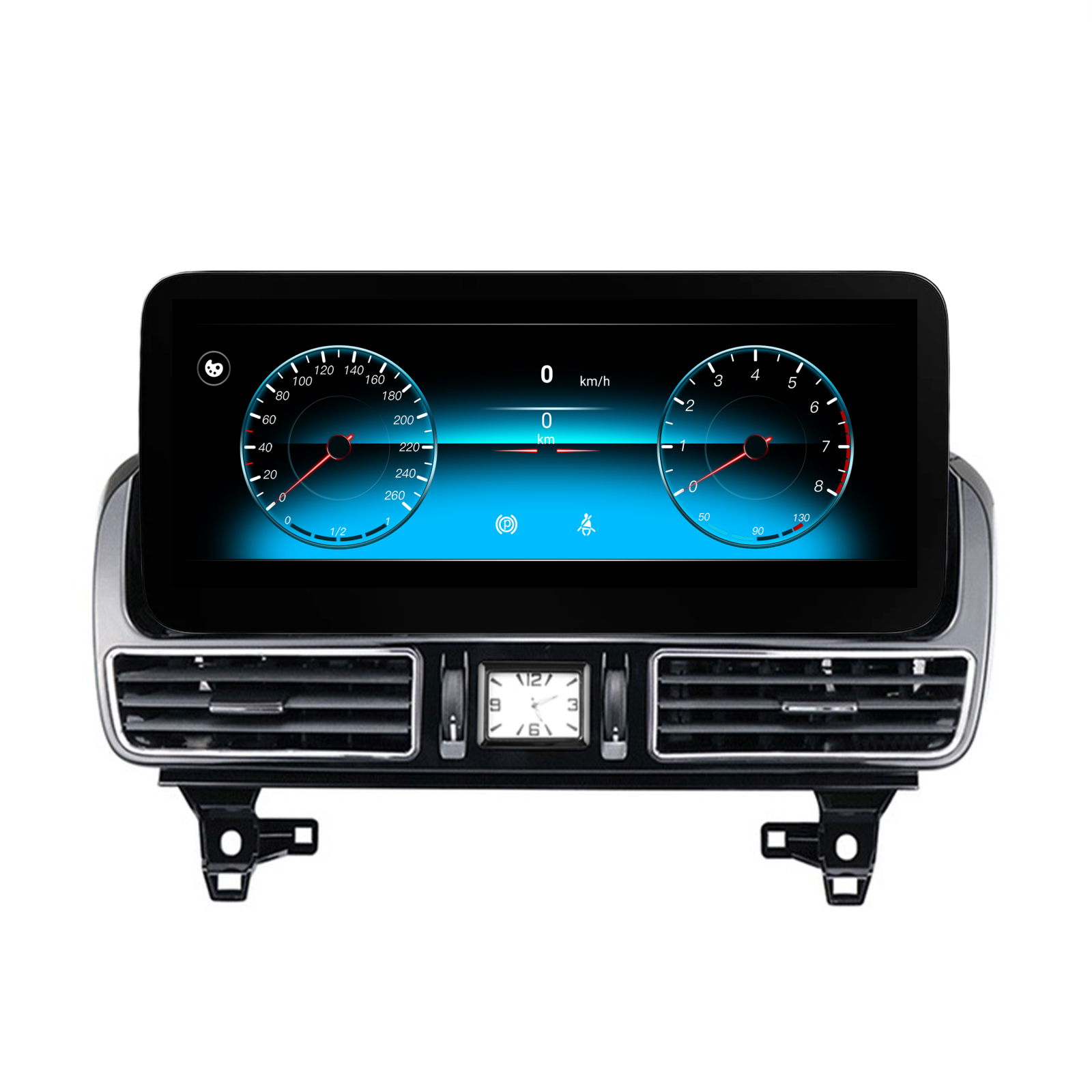 - Navigatia comunica cu calculatorul masinii si va prelua senzorii de parcare față/spate, parametri generali (uși deschise , nivel combustibil , turometru, nivel lichid parbriz, centură, tensiune baterie etc ), afișaj clima , temperatura exterioara