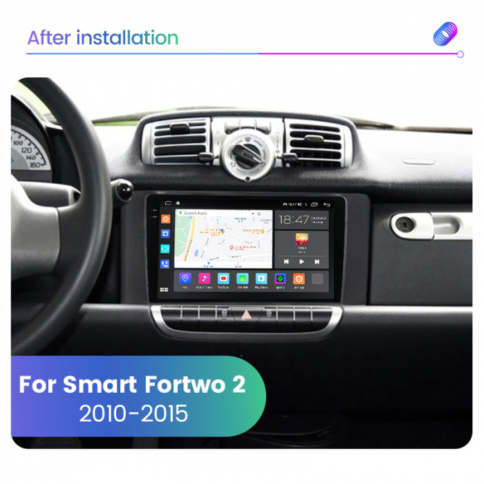 Navigatie Smart ForTwo ( 2010 - 2015 ) 4GB RAM si 64GB ROM, Ecran QLED 9 inch, Android 14, Procesor Octacore, Slot sim 4G, Sunet DSP, Wireless Carplay si Android Auto, Camera Marsarier + CADOU