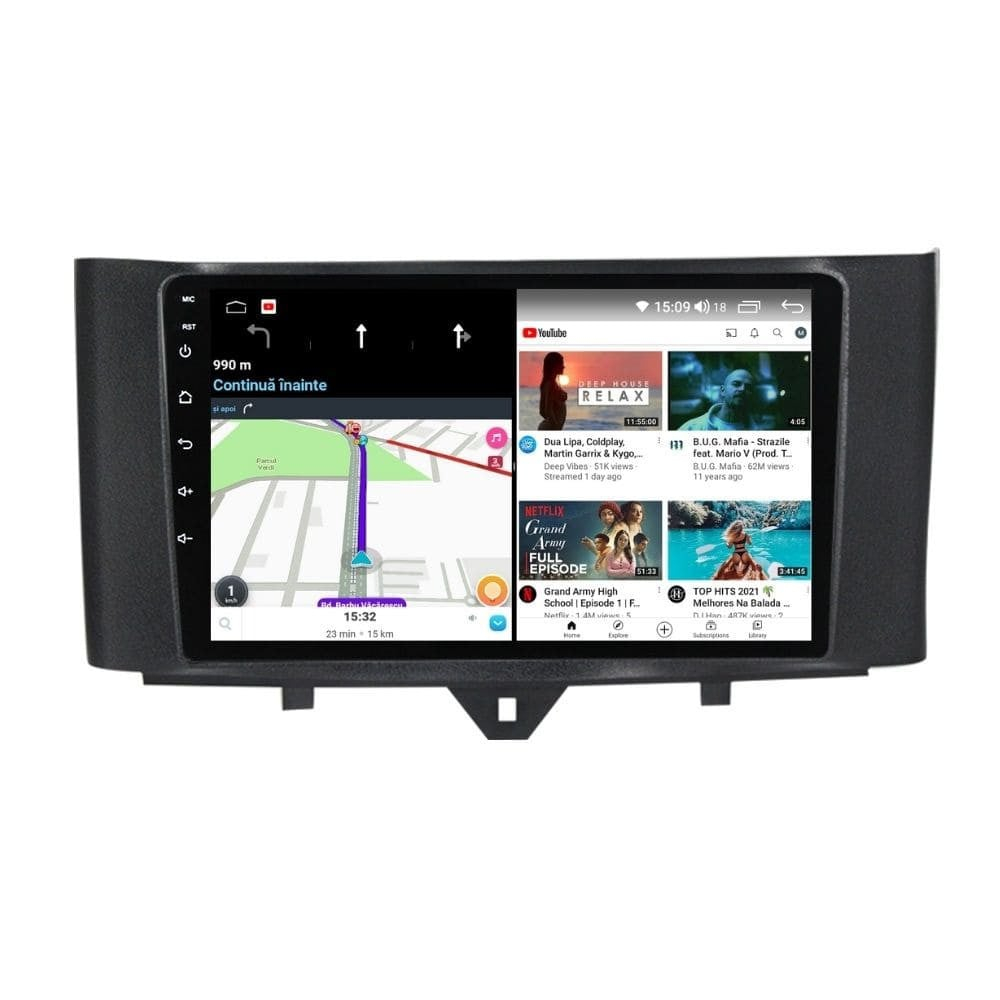 Navigatie Smart Fortwo din 2010-2015, Android 14, Wireless Carplay si Android Auto, 2GB RAM si 32GB ROM, Display IPS 9 inch, Camera Marsarier, Internet, Aplicatii, Wi Fi, Usb, Bluetooth + CADOU