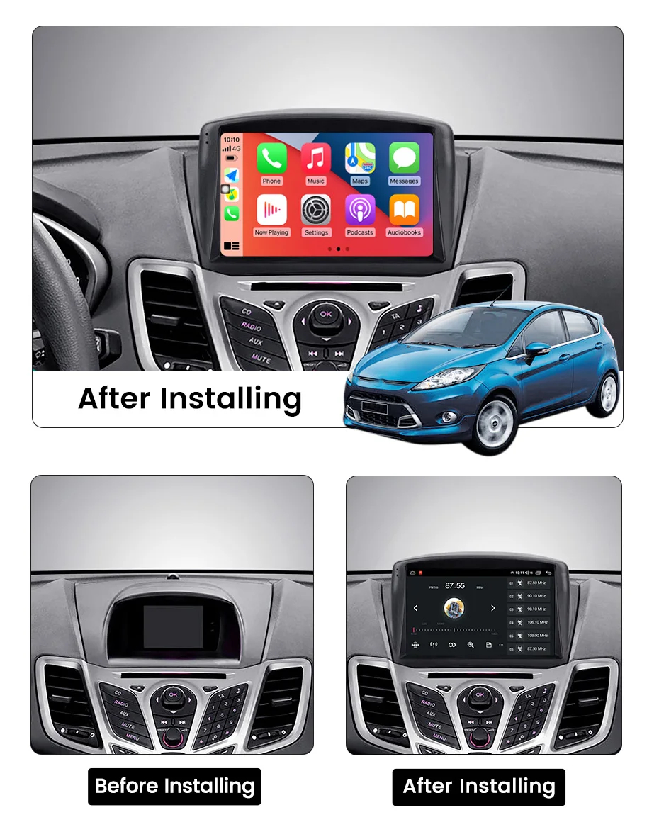 Navigatie Ford Fiesta MK6 2008-2019 Android 14 , 2GB RAM QLED Carplay + CADOU