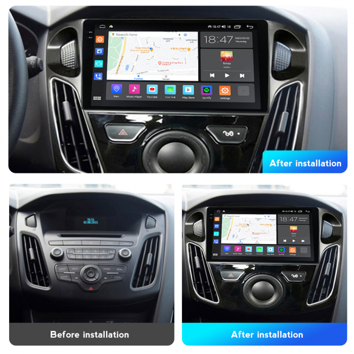 Navigatie Ford Focus 3 din 2012-2018, Android 14, Wireless Carplay si Android Auto, 2GB RAM si 32GB ROM, Display IPS 9 inch, Camera Marsarier, Internet, Aplicatii, Wi Fi, Usb, Bluetooth + CADOU