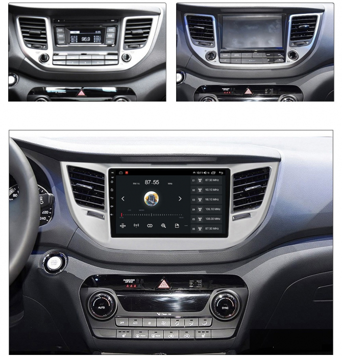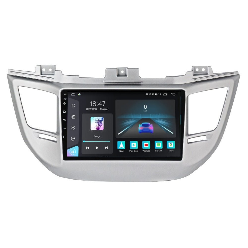 Navigatie Hyundai Tucson din 2014-2018, Rezolutie 2K, Display QLED 9.5 inch, 4GB RAM si 64GB ROM, Android, Procesor Octacore, Slot sim 4G, Sunet DSP, Wireless Carplay si Android Auto, Camera Marsarier