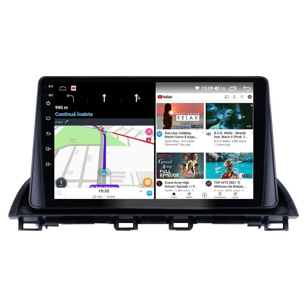 Navigatie Mazda 3 din 2013 - 2019, 8GB RAM si 128GB ROM, Ecran QLED 9 inch, Android 14, Procesor Octacore, Slot sim 4G, Sunet DSP, Wireless Carplay si Android Auto, Camera Marsarier + CADOU