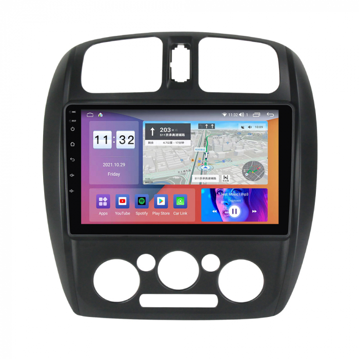 Display: Touchscreen 9 inch QLED 1280x720, multi-touch, format 16:9, cu margini curbate și tehnologie 2.5D