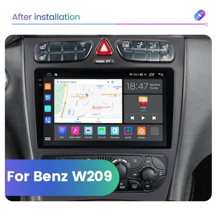 Navigatie Mercedes C Class W203 W209 Facelift din 2004-2011 Android 14 , 4GB RAM , Procesor Quad Core , Wireless Carplay si Android auto , Display HD Touchscreen, Wi-Fi , Bluetooth, USB