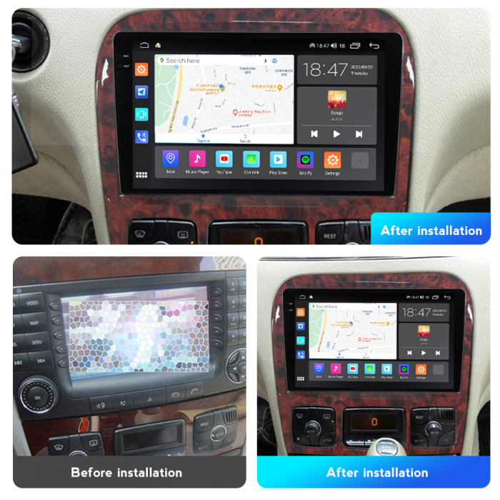 Navigatie Mercedes S Class W220 din 1998-2005, Android 14, Wireless Carplay si Android Auto, 2GB RAM si 32GB ROM, Display IPS 9 inch, Camera Marsarier, Internet, Aplicatii, Wi Fi, Usb, Bluetooth + CADOU