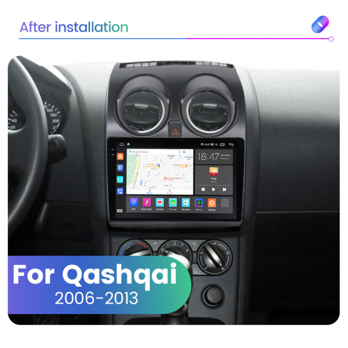 Navigatie Nissan Qashqai J10 din 2006-2013, Rezolutie 2K, Display QLED 9.5 inch, 4GB RAM si 64GB ROM, Android, Procesor Octacore, Slot sim 4G, Sunet DSP, Wireless Carplay si Android Auto, Camera Marsa