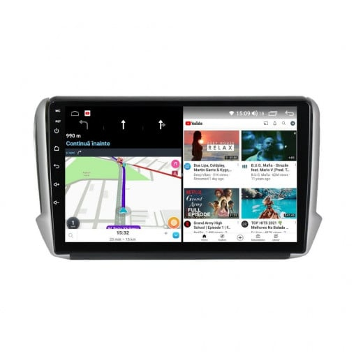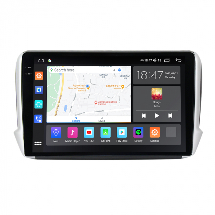 Navigatie Peugeot 208 2008 din 2012-2020, Rezolutie 2K, Ecran QLED 10.5 inch, 8GB RAM si 128GB ROM, Android, Procesor Octacore, Slot sim 4G, Sunet DSP, Wireless Carplay + CADOU