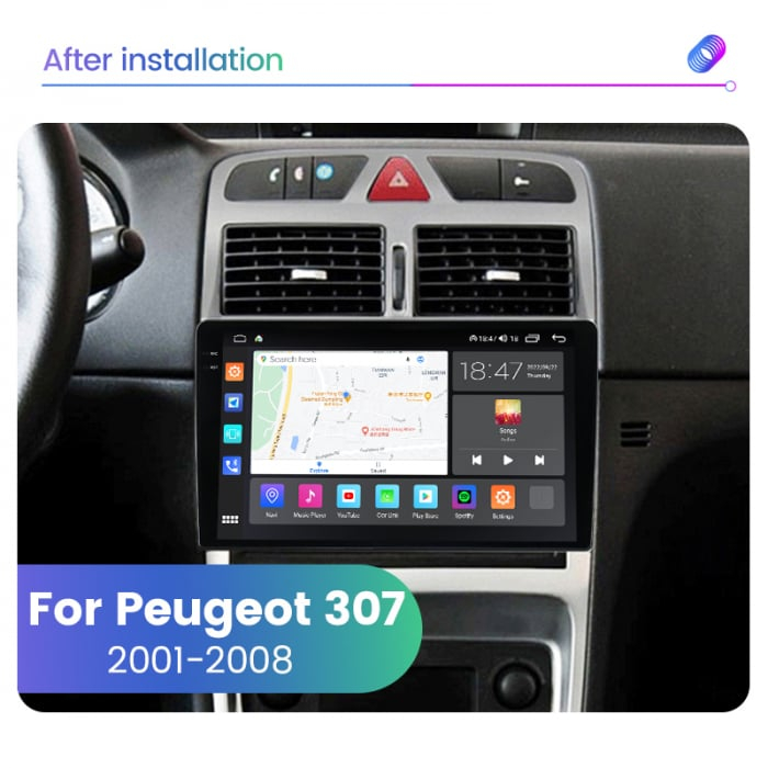 Navigatie Peugeot 307 din 2002-2013, Rezolutie 2K, Display QLED 9.5 inch, 4GB RAM si 64GB ROM, Android, Procesor Octacore, Slot sim 4G, Sunet DSP, Wireless Carplay si Android Auto, Camera Marsarier, U