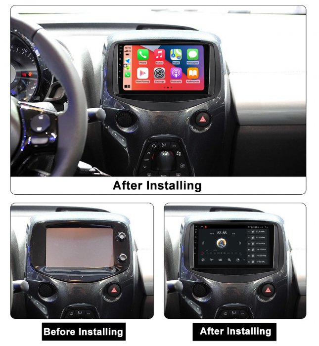 Navigatie Peugeot 108 , 2014 - 2021, 4GB RAM si 64GB ROM, Ecran QLED 9 inch, Android 14, Procesor Octacore, Slot sim 4G, Sunet DSP, Wireless Carplay si Android Auto + CADOU