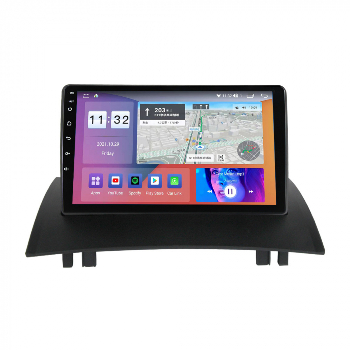 Navigatie Renault Megane 2 din 2002-2009, Rezolutie 2K, Ecran QLED 9.5 inch, 8GB RAM si 128GB ROM, Android, Procesor Octacore, Slot sim 4G, Sunet DSP, Wireless Carplay + CADOU