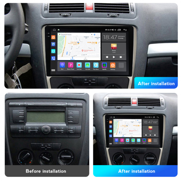 Navigatie Skoda Octavia 2 din 2008 - 2013, Rezolutie 2K, Ecran QLED 10.5 inch, 8GB RAM si 128GB ROM, Android, Procesor Octacore, Slot sim 4G, Sunet DSP, Wireless Carplay + CADOU