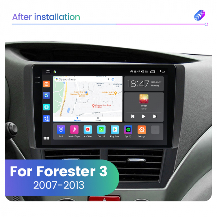 Navigatie Subaru Forester 3 din 2007 - 2013, NAVIGPS, Android 14, Wireless Carplay si Android Auto, 2GB RAM si 32GB ROM, Display IPS 9 inch, Camera Marsarier, Internet, Aplicatii, Wi Fi, Usb + CADOU