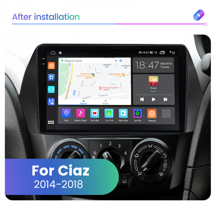 Navigatie Suzuki Ciaz din 2014-2019, Rezolutie 2K, Ecran QLED 9.5 inch, 8GB RAM si 128GB ROM, Android, Procesor Octacore, Slot sim 4G, Sunet DSP, Wireless Carplay + CADOU