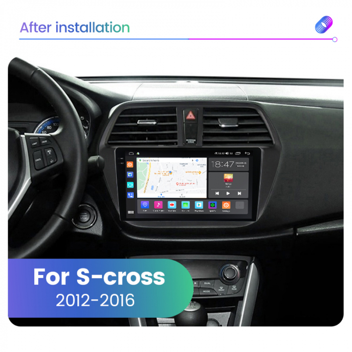 Navigatie Suzuki S Cross 2012 - 2017, 4GB RAM si 64GB ROM, Ecran QLED 9 inch, Android 14, Procesor Octacore, Slot sim 4G, Sunet DSP, Wireless Carplay si Android Auto, Camera Marsarier + CADOU
