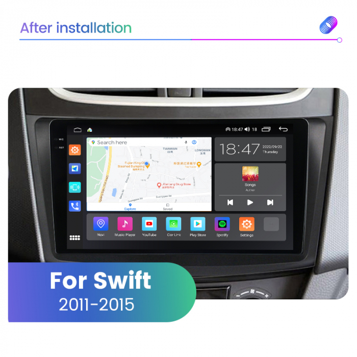 Navigatie Suzuki Swift din 2010-2017, Android 14 , 4GB RAM, Octacore, Slot Sim 4G, DSP, GPS, Wi-FI, Carplay, Android Auto, USB, Bluetooth, Waze, Touchscreen, 9 inch + CADOU