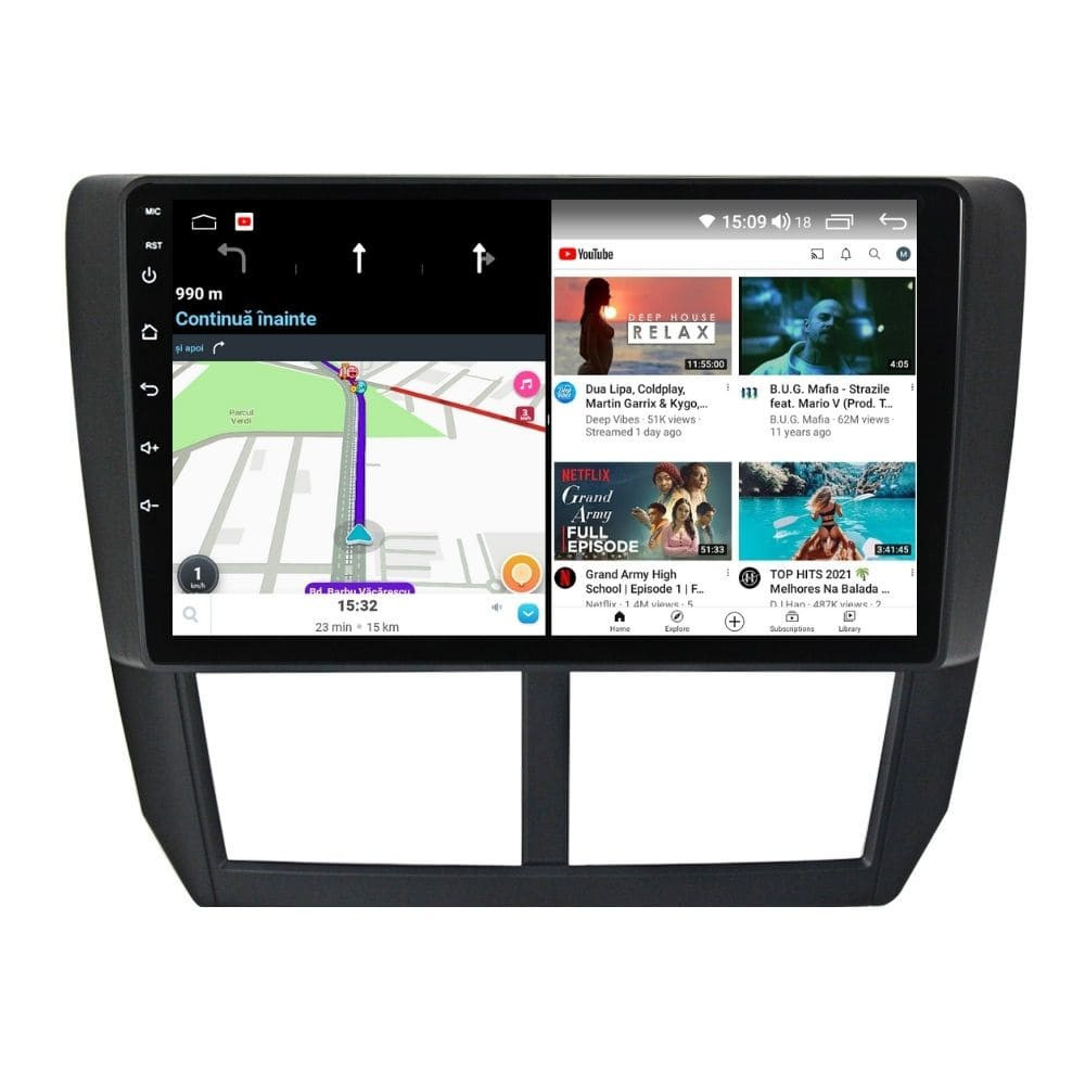 Display: Touchscreen 9 inch QLED 1280x720, multi-touch, format 16:9, cu margini curbate și tehnologie 2.5D
