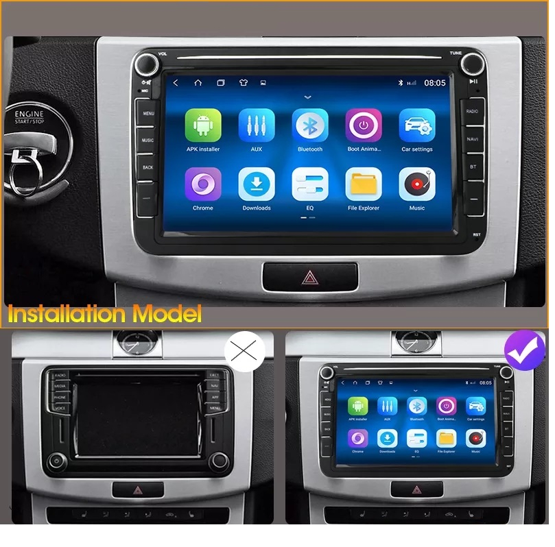 Display: Touchscreen 8 inch IPS 1280x720, multi-touch, format 16:9, cu margini curbate și tehnologie 2.5D