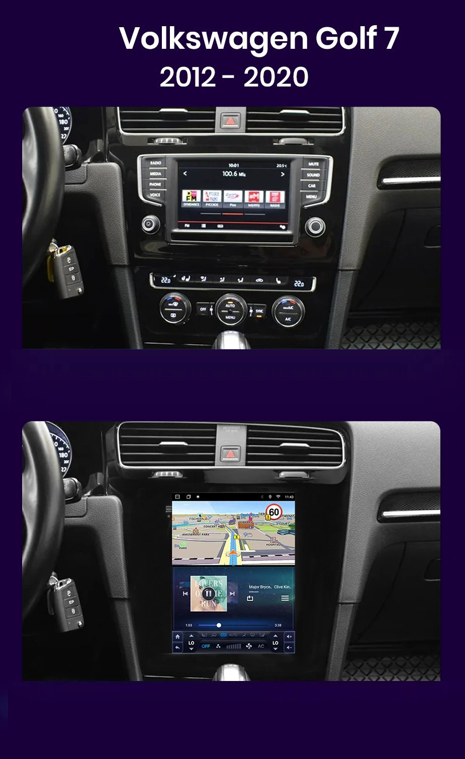 Navigatie dedicata cu Android Tip Tesla VW Golf 7 2012 - 2019, 4GB RAM, Radio GPS Dual Zone, Touchscreen IPS 9.7" HD, Internet Wi-Fi si slot SIM 4G, Bluetooth, MirrorLink, USB